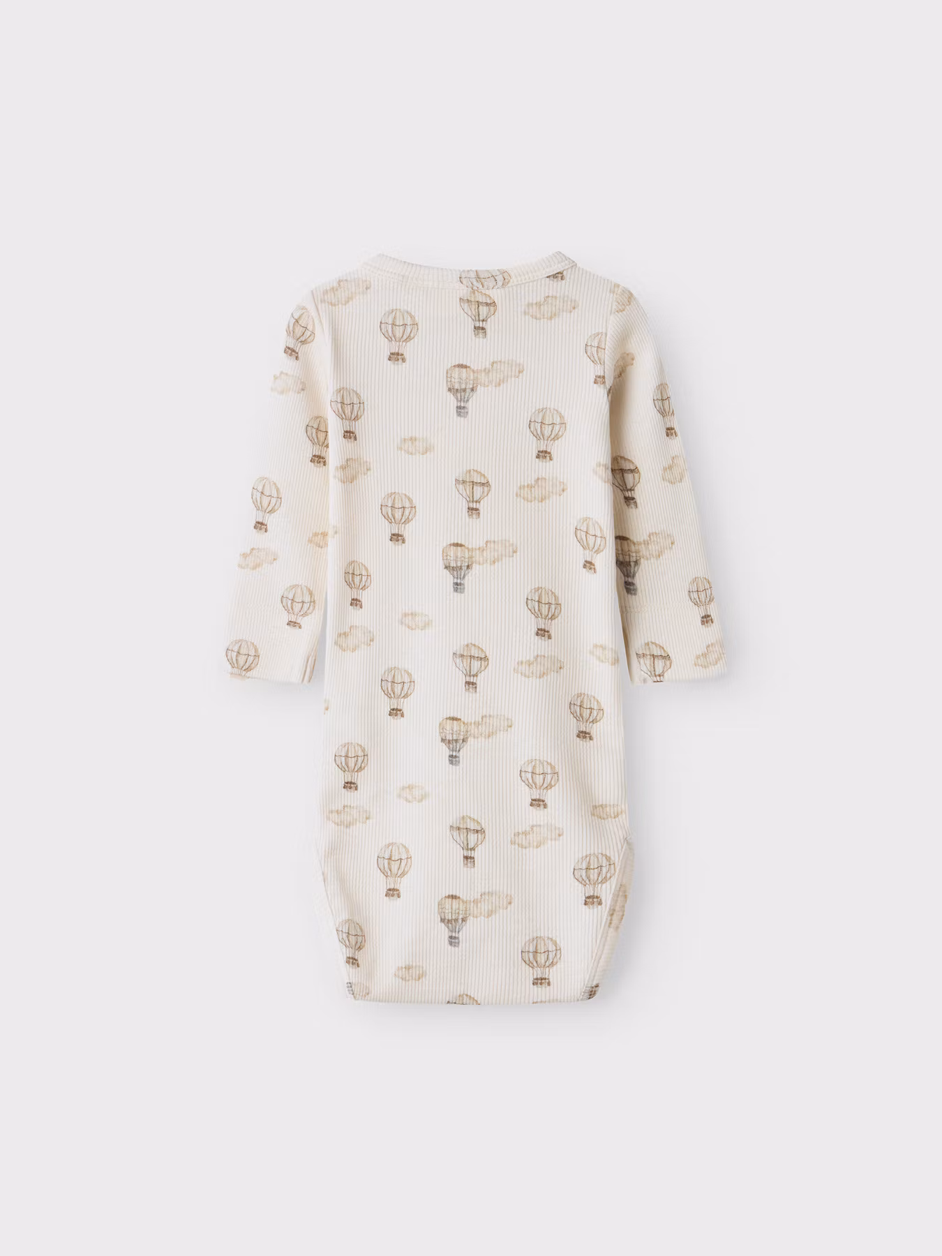 En mjuk och bekväm body i färgen Turtledove med ett lekfullt luftballongmönster från Lil'Atelier. Ett praktiskt och stilrent plagg som passar perfekt i barnets basgarderob.