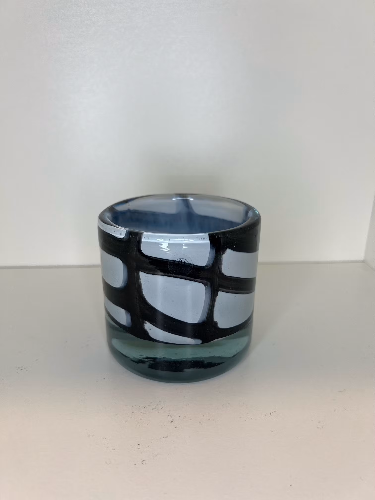 Ljuslykta UNIK Cylinder, Vit och Svart, Handgjord i Glas, D8,5xH8,21 cm - Milton Home