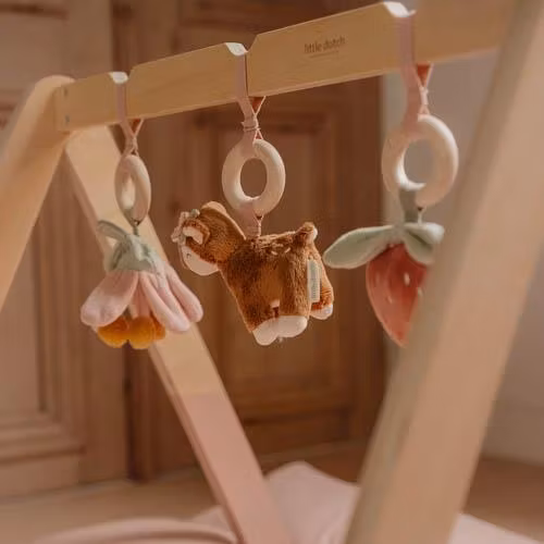 Ett babygym i trä för nyfödd är ett utmärkt sätt att stimulera barnets tidiga utveckling. Babygym Fairy Garden från Little Dutch kombinerar hållbara material, lekfull design och sensoriska detaljer som uppmuntrar barnet att sträcka sig, greppa och utforska. Med fokus på både säkerhet och estetik blir babygymmet en trygg, vacker och utvecklande del av barnets första lekstunder.