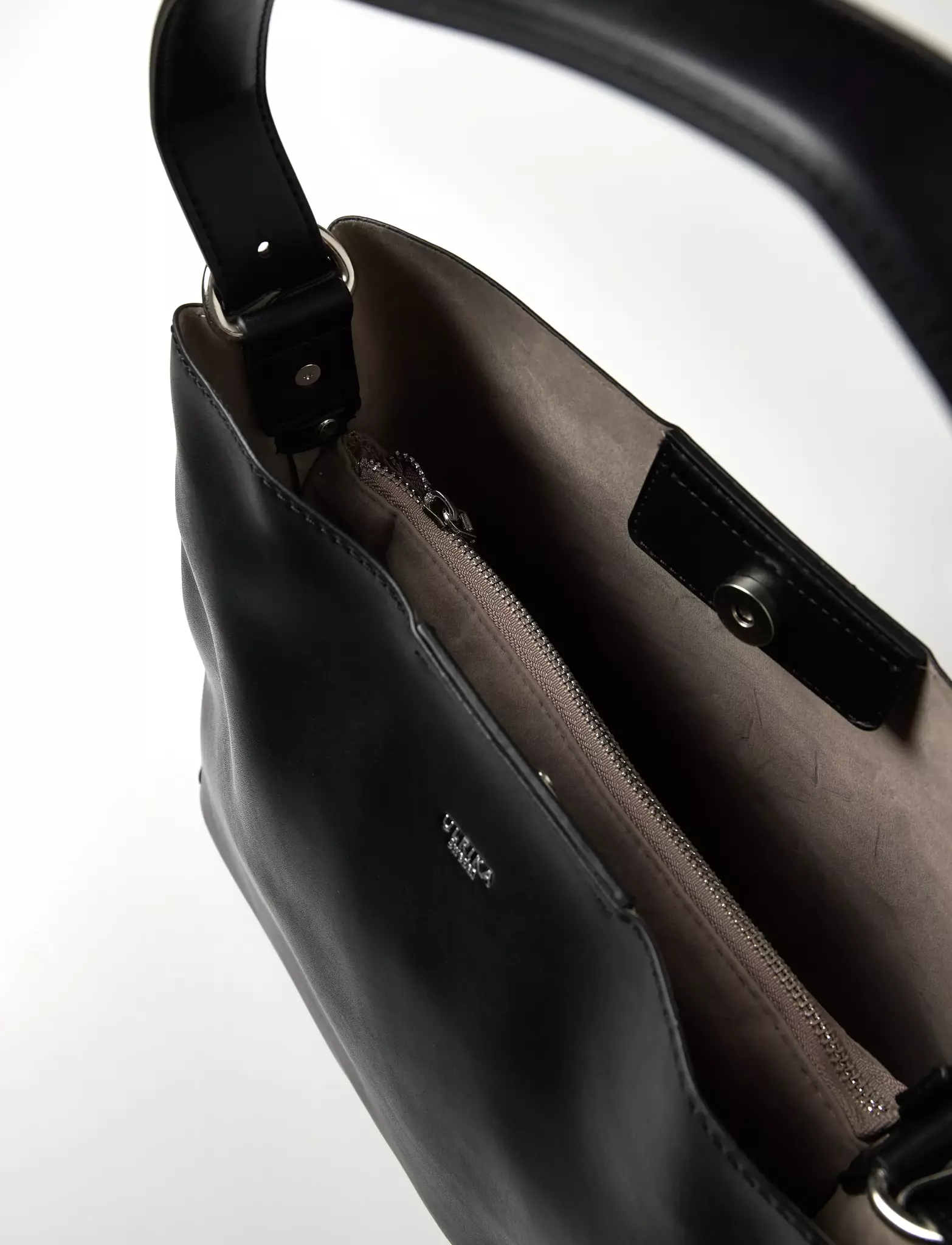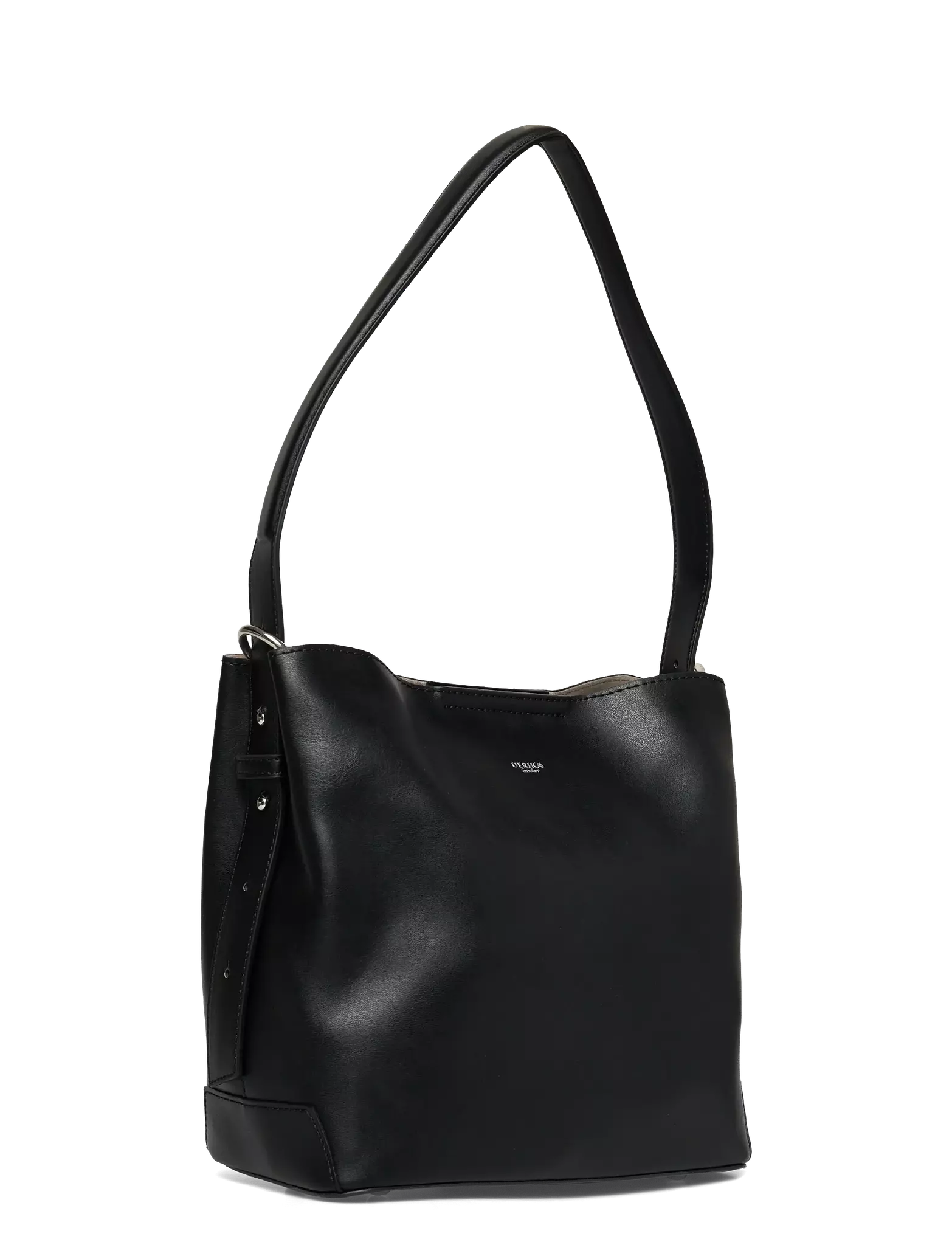 Denna svarta bucket bag från Ulrika Design kombinerar modern minimalism med smart funktionalitet och är ett utmärkt val för dig som söker en stilren men rymlig vardagsväska. Den tidlösa designen gör att väskan passar lika bra till vardagsoutfiten som till arbete, shopping eller en mer uppklädd look.