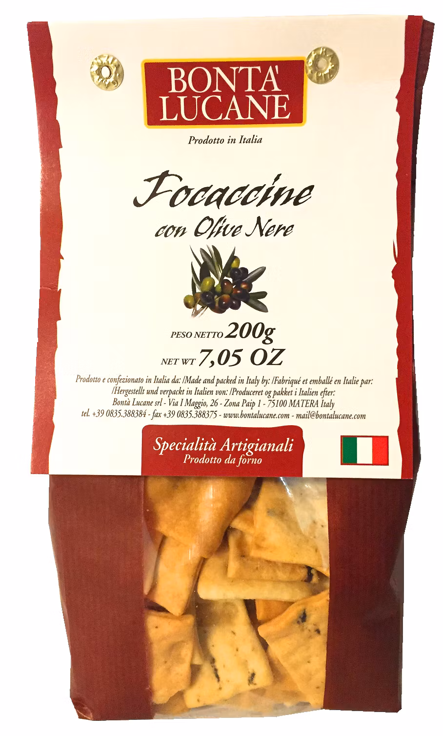 Focaccine med svarta oliver 200 g – Bontà Lucane