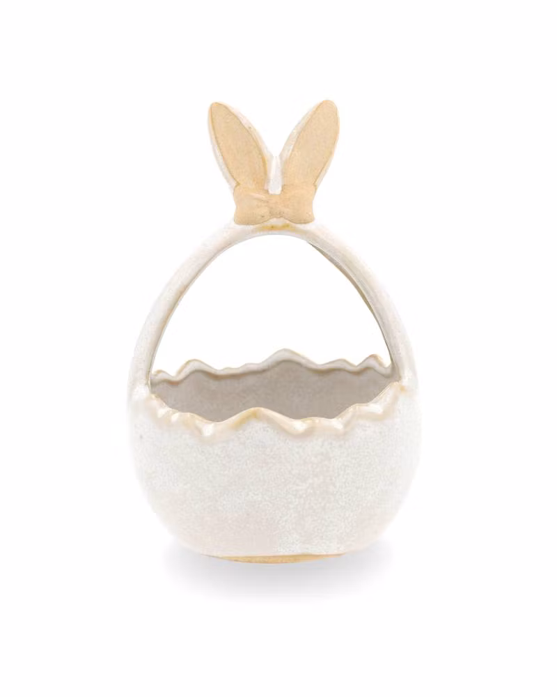 En dekorativ liten kruka i korgdesign med kaninöron som ger en lekfull och charmig känsla till hemmet. Perfekt som kruka för plantering av små växter eller som en söt behållare för påskens godis.
