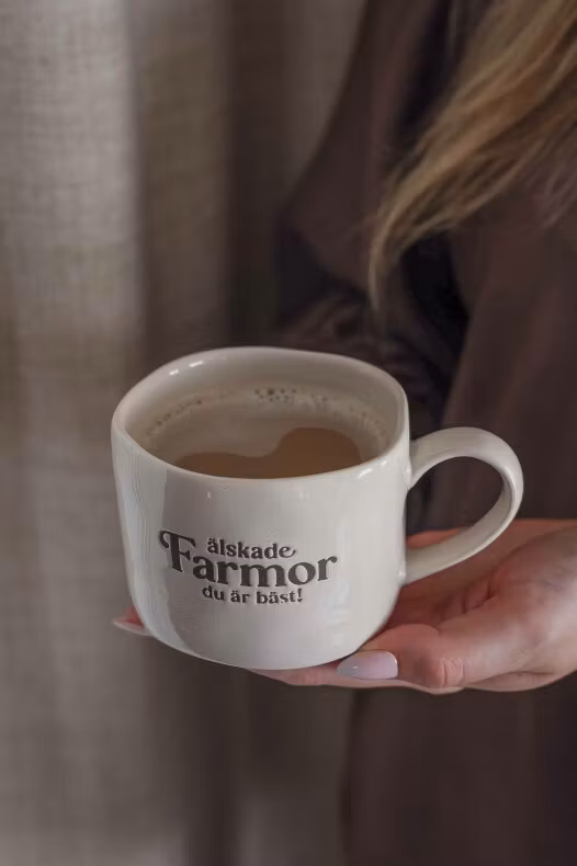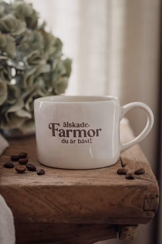 Mugg Älskade Farmor – Majas stengodsmugg 3 dl | Present till farmor