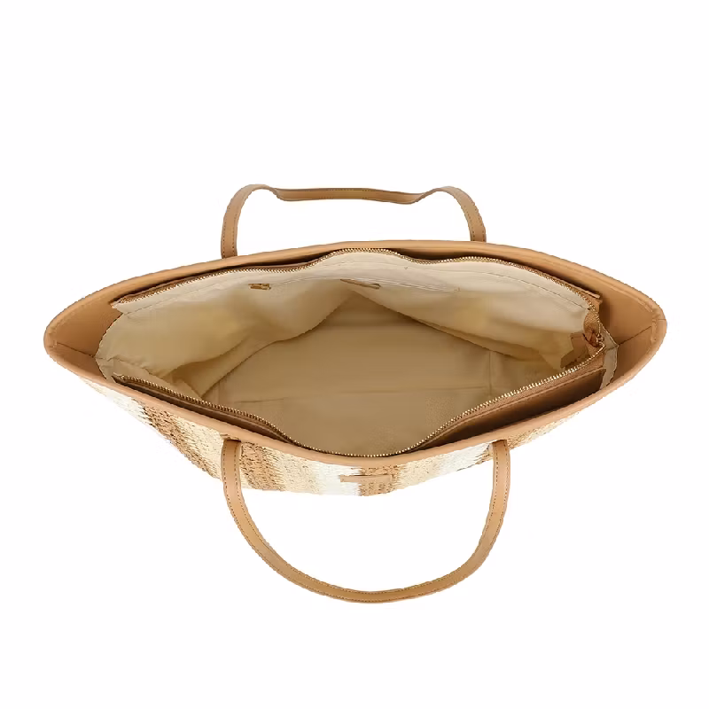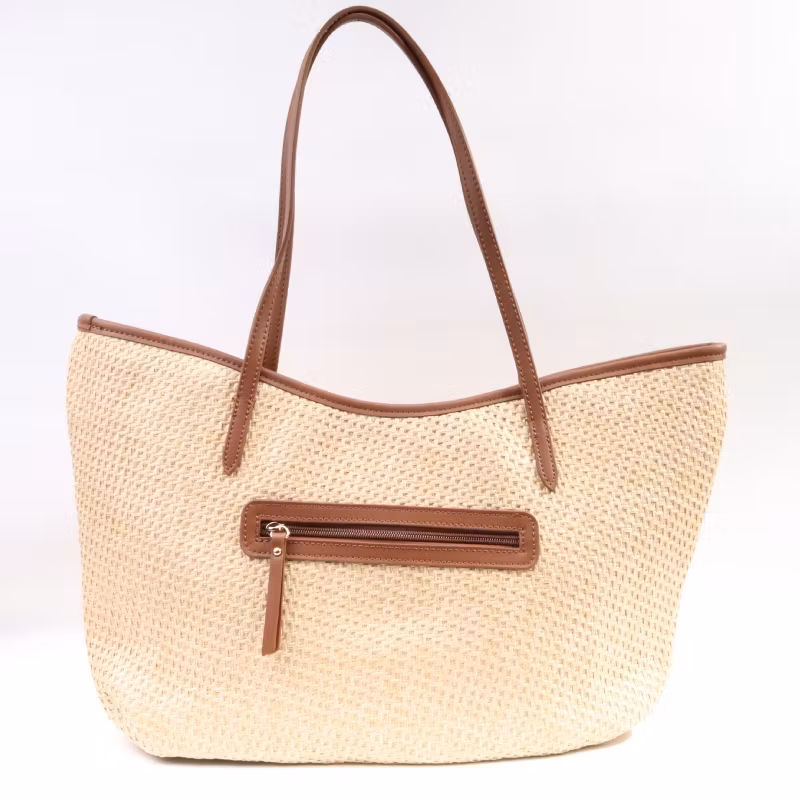 Rymlig stråväska i bast med dragkedja och innerfack. Perfekt som shopper, strandväska eller vardagsväska. Finns i två färger.