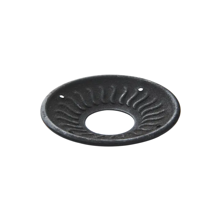 Dekorativ ljusmanschett i svart plåt som skyddar ljusstaken från stearin. Passar kronljus och får en vacker patina med tiden.